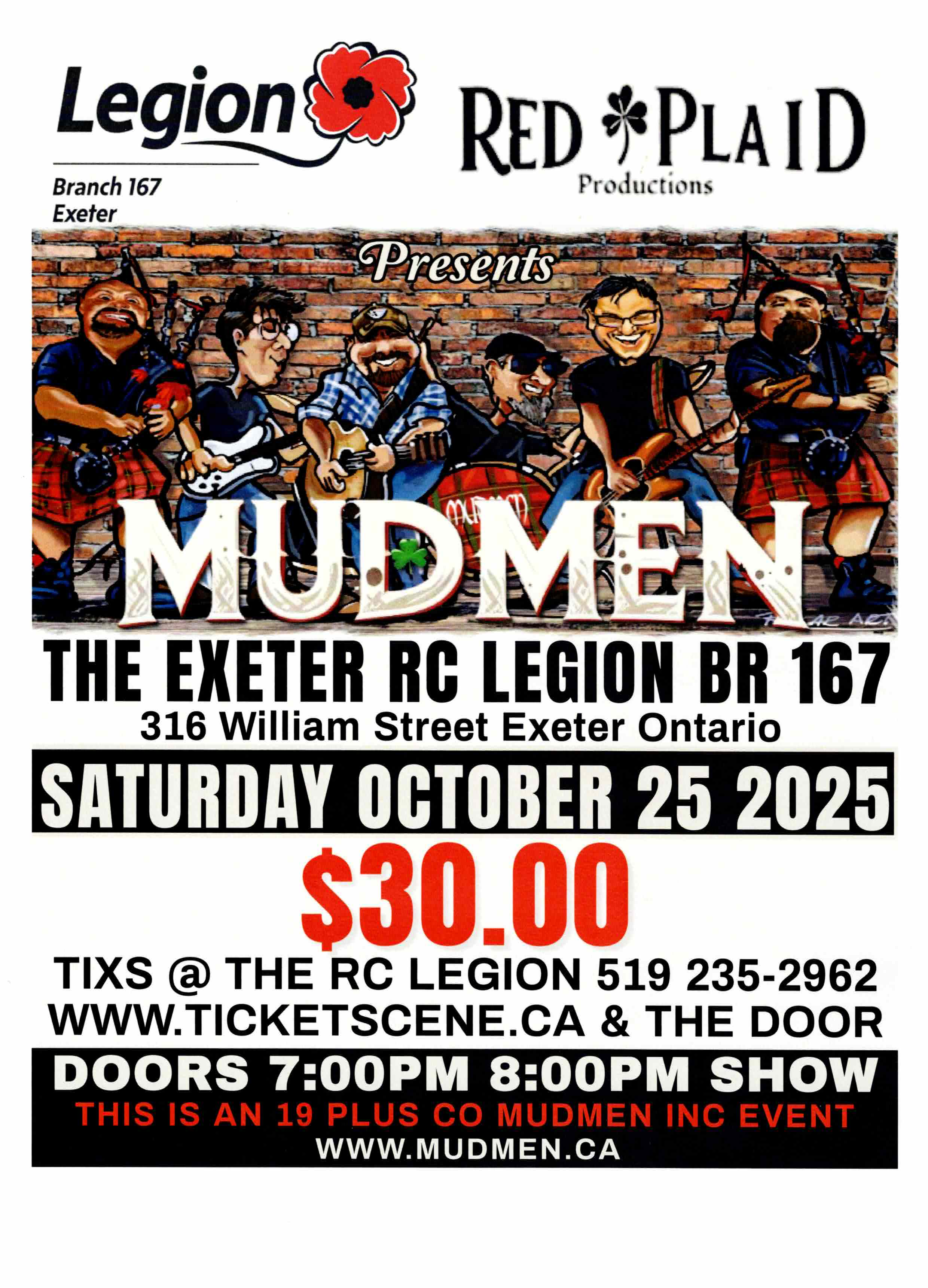 $30 Tickets are available at Ticketscene.ca, at the Exeter Legion in advance, or at the door.